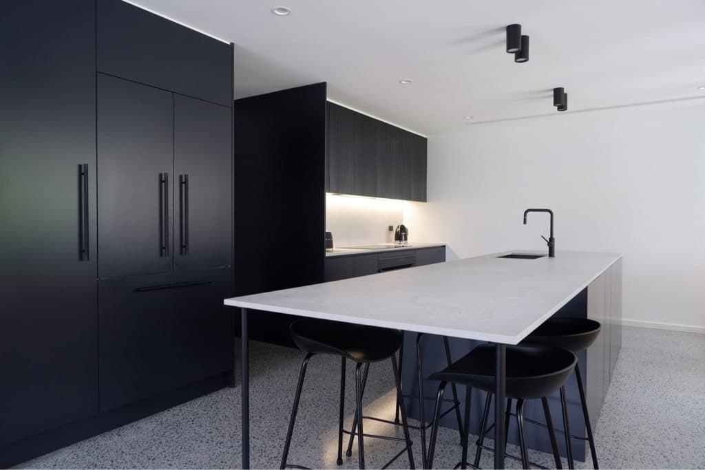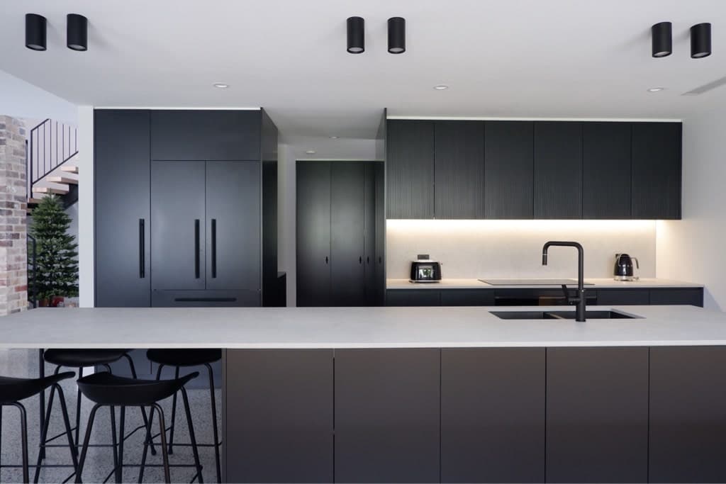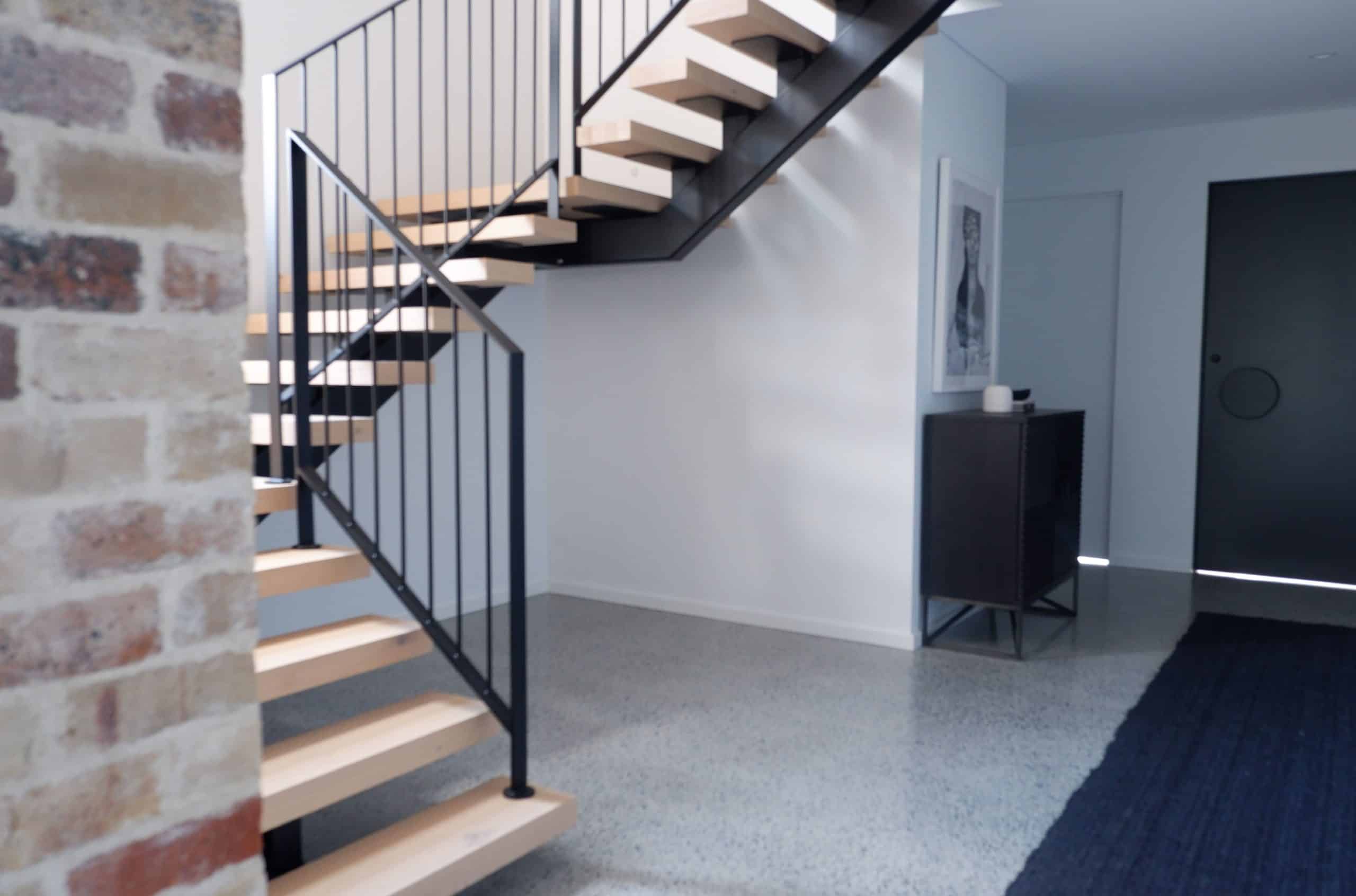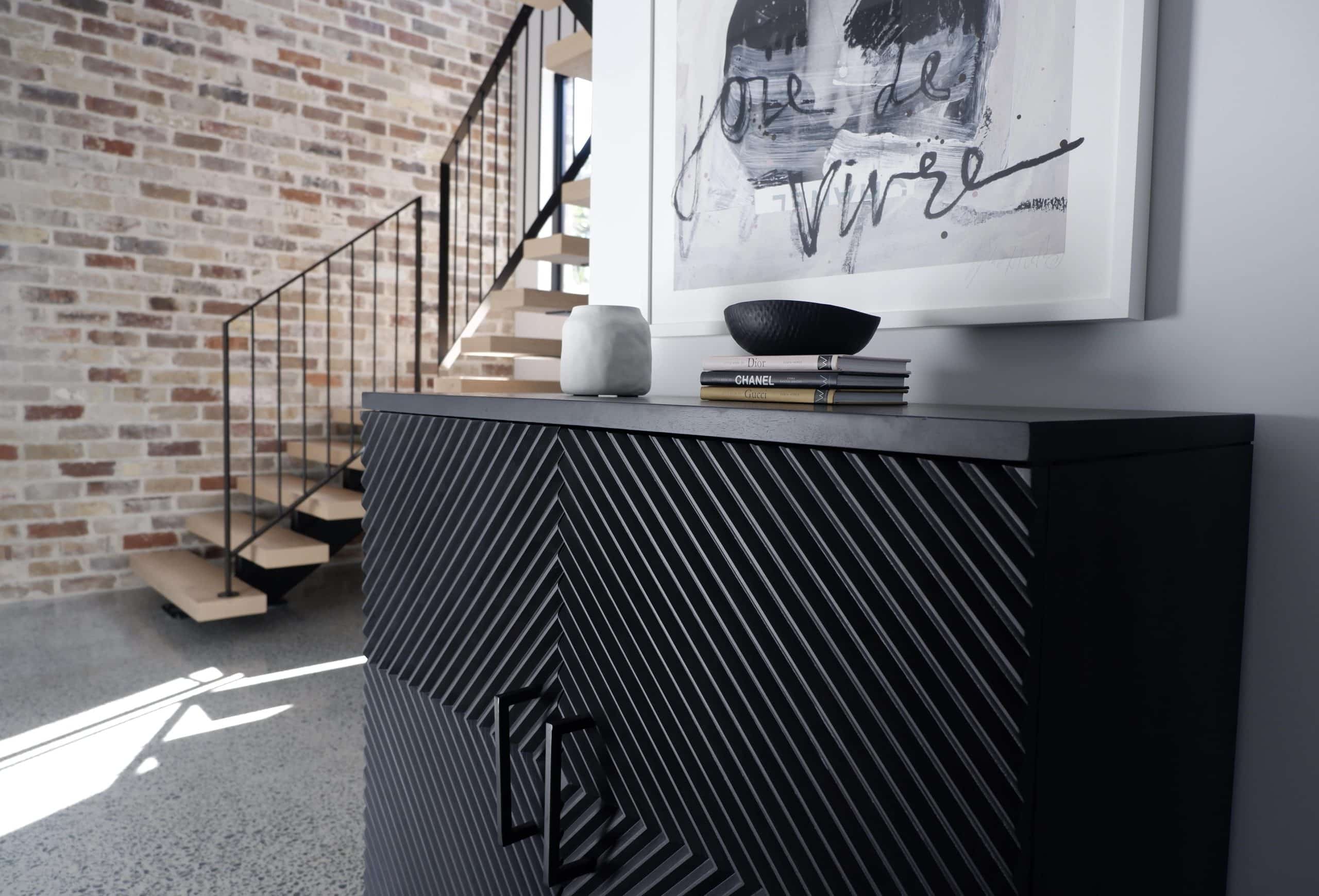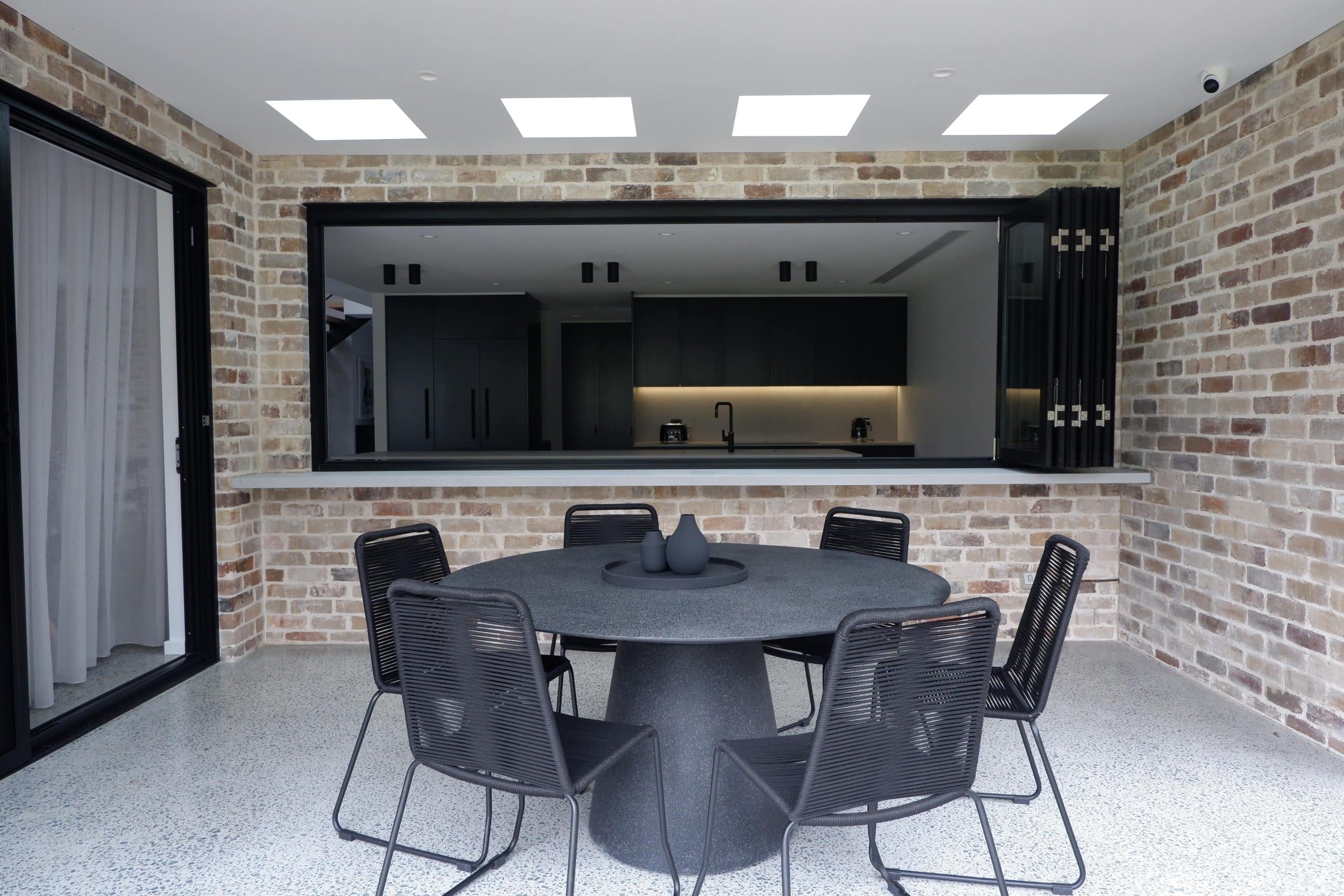 We combined several industrial elements such as recycled brick, polished concrete floors, and feature blades to create this uniquely charming home.